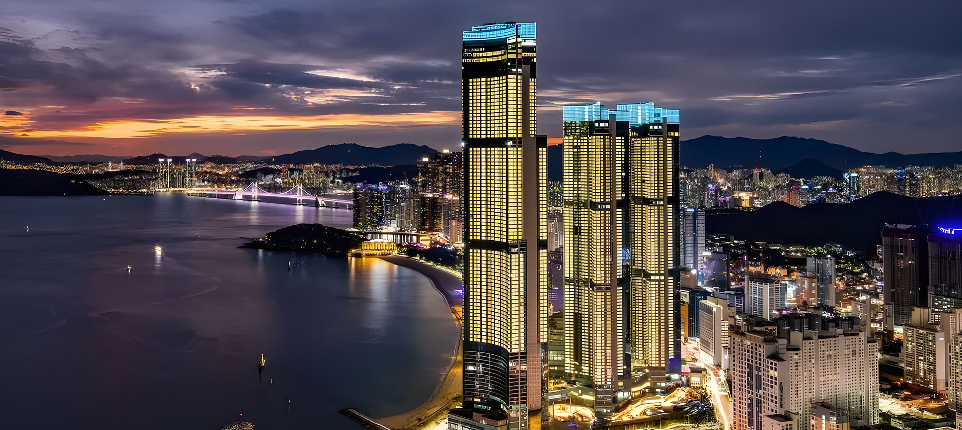 環(huán)境:位置優(yōu)越,駕車至海云臺站僅需2km。周邊釜山X the Sky、尾浦鐵路和海云臺藍線公園。酒店占盡地理之宜,附近便是海云臺海水浴場白沙灘,環(huán)海建設,俯瞰整個釜山海峽,隔海相望為日本的對馬島。