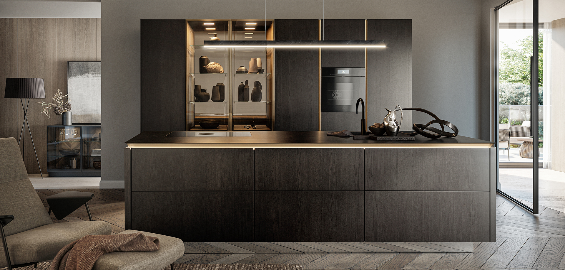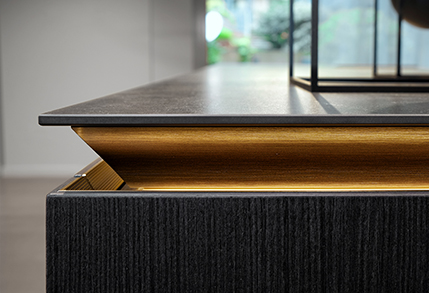 The indirect illumination of the SLX's handleless profile creates a look that is tangible and a feel that is visible.