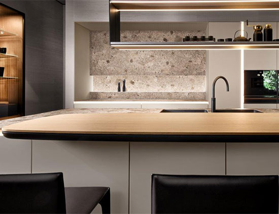 全新的拉手槽概念,設計去除了明裝拉手-但完美的角度,令人愉悅的形狀和材料的質量使觸覺體驗到了一個新的水平。